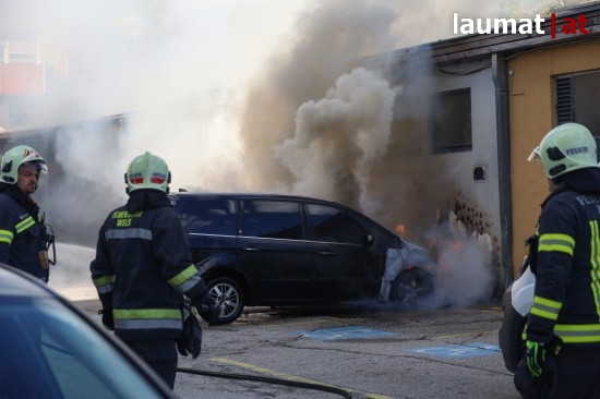 Die Einsatzkräfte der Feuerwehr wurden Samstagmittag zu einem PKW-Brand in den Welser Stadtteil Neustadt alarmiert. Zwischenzeitlich kamen weitere Notrufe bei der Feuerwehr an, die bereits ein Übergreifen der Flammen auf angrenzende Gebäude berichteten. Vor Ort konnte dann ein nahezu in Vollbrand stehender PKW vorgefunden werden, die angrenzende Fassade wurde durch die Flammen bereits etwas in Mitleidenschaft gezogen. Das Feuer konnte rasch unter Kontrolle gebracht werden. Das angrenzende Lokal wurde belüftet. Der Fahrzeugbesitzer wurde vor Ort aufgrund einer kleinen Verletzung vom Rettungsdienst versorgt, ein Transport ins Krankenhaus war nicht notwendig.