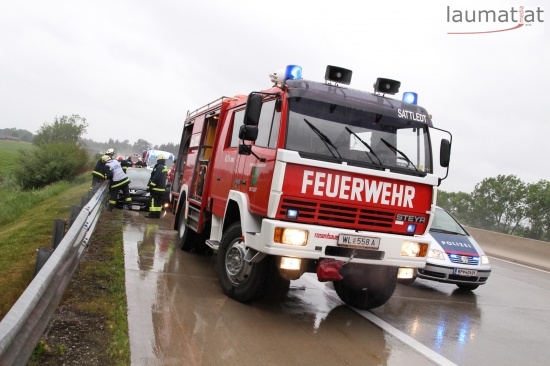 PKW kracht auf regennasser Autobahn gegen Leitschienen