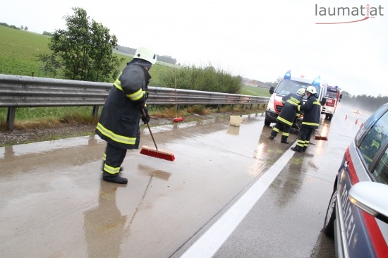 Ein PKW ist am frühen Freitagabend auf der A1, Westautobahn, in Fahrtrichtung Wien, kurz vor Allhaming gegen die Leitschienen gekracht.