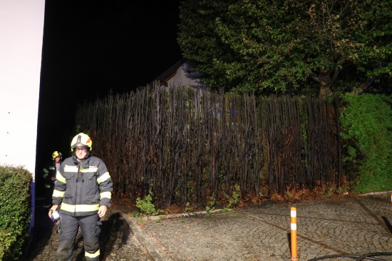In Steinhaus (Bezirk Wels-Land) standen am Donnerstagabend erneut die Einsatzkräfte von zwei Feuerwehren bei einem Brand im Einsatz. Diesmal brannte eine Hecke im Ortszentrum.