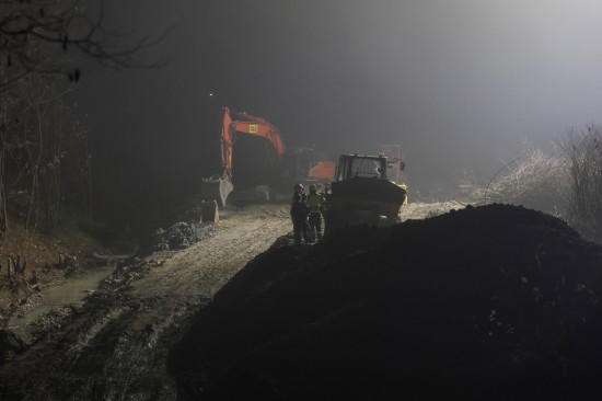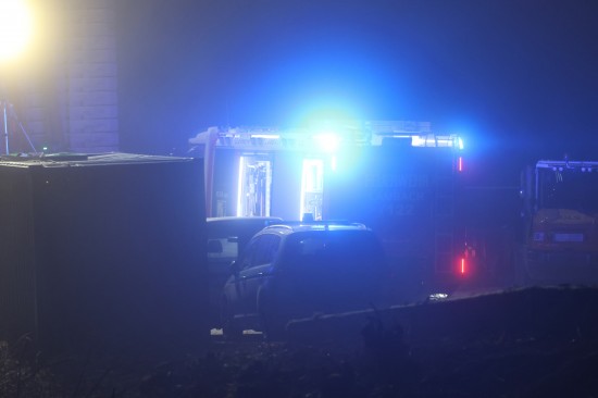 Raddumper umgestürzt: Einsatzkräfte bei Personenrettung auf Baustelle in Lambach im Einsatz
