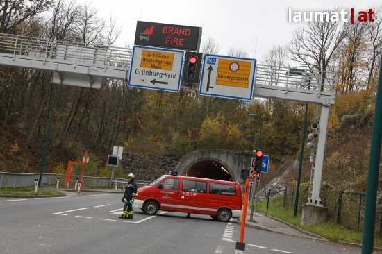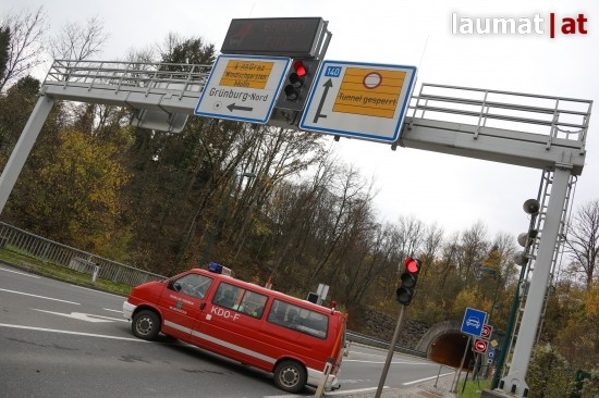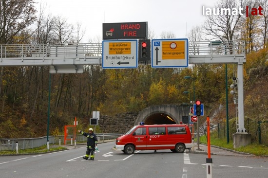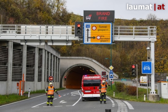 Rauchender LKW-Reifen im Tunnel Grünburg löste Großeinsatz aus