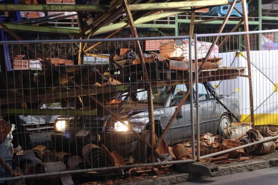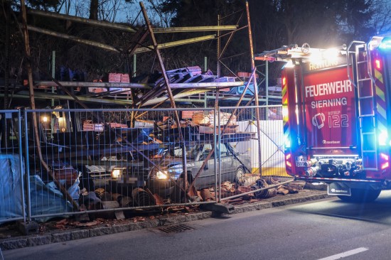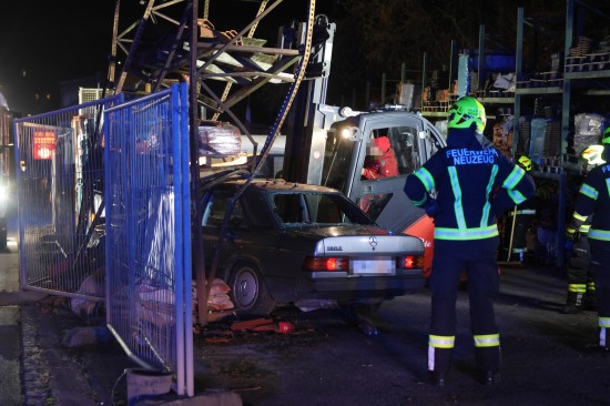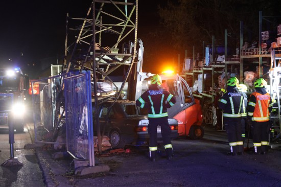 Reanimation: Autolenker in Sierning in Lagerplatz eines Dachdeckerbetriebes gekracht