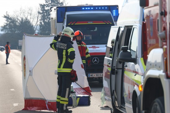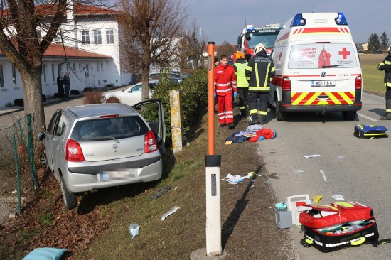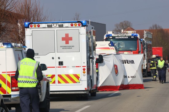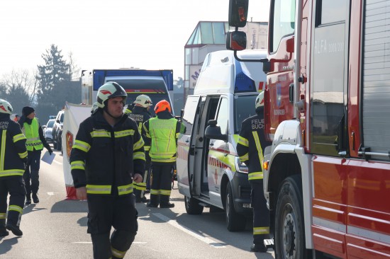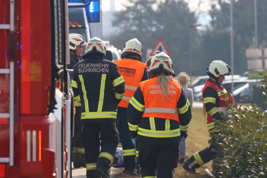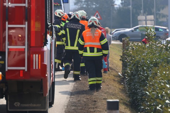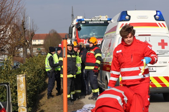 Buchkirchen/Marchtrenk. Nach einem Unfall standen die Einsatzkräfte von Feuerwehr, Rettung, Notarzt und Polizei Dienstagvormittag genau an der Gemeindegrenze zwischen Buchkirchen und Marchtrenk (Bezirk Wels-Land) im Einsatz.