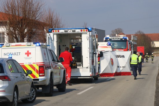 Nach einem Unfall standen die Einsatzkräfte von Feuerwehr, Rettung, Notarzt und Polizei Dienstagvormittag an der Gemeindegrenze zwischen Buchkirchen und Marchtrenk (Bezirk Wels-Land) im Einsatz.