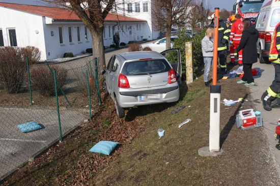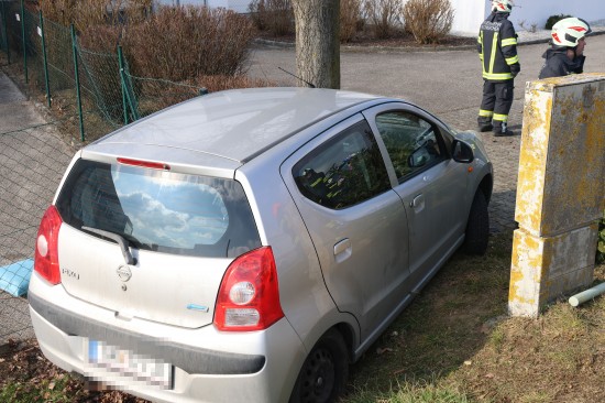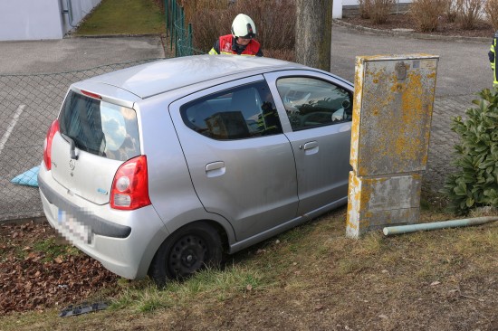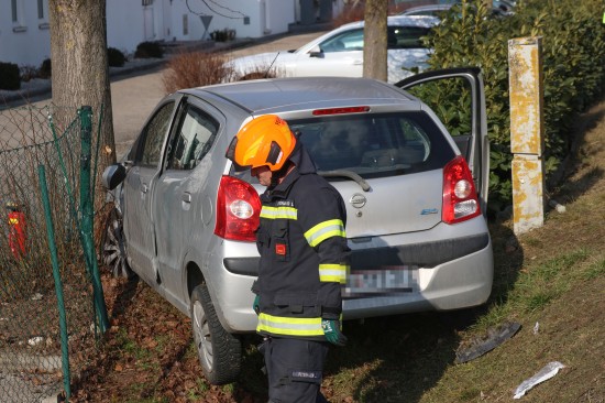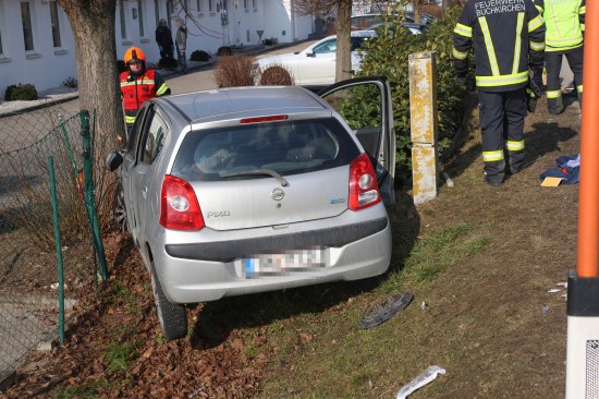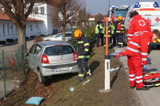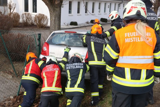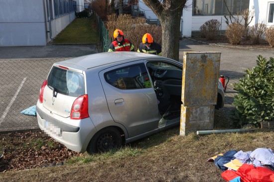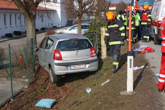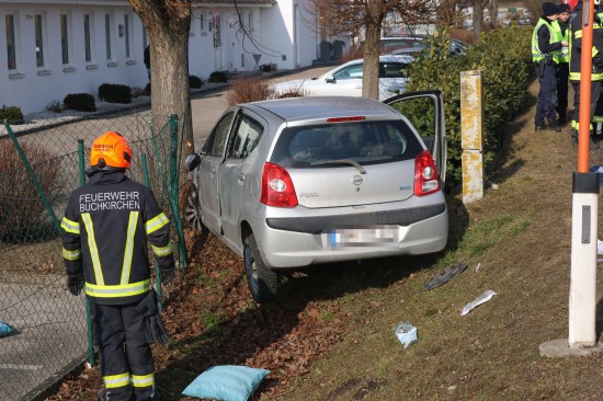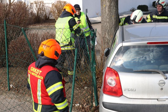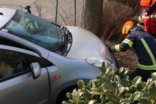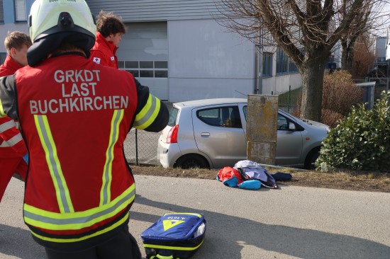 Ein Autolenker war ersten Angaben nach auf der L1232 Buchkirchener Straße, Hovalstraße, im Gemeindegebiet von Marchtrenk unterwegs, als er am Steuer seines PKW vermutlich einen medizinischen Notfall erlitten haben dürfte und dadurch die Kontrolle über sein Auto verlor. Der PKW kam von der Straße ab, geriet in die Böschung zu einem - bereits zum Gemeindegebiet von Buchkirchen gehörenden - Firmengelände, touchierte dort einen Zaun und kam an einem Baum zum Stillstand. Drei Feuerwehren wurden zu einer eingeklemmten Person alarmiert. Der Lenker konnte bereits von Ersthelfern aus dem PKW befreit werden, diese starteten sofort mit Reanimationsmaßnahmen, welche dann von den eintreffenden Rettungskräften samt Notarzt fortgeführt wurden. Der Patient wurde nach der Erstversorgung am Einsatzort ins Klinikum Wels eingeliefert. Die Feuerwehr führte in weiterer Folge die Bergung des verunfallten PKW durch. Das Auto wurde am angrenzenden Firmenparkplatz abgestellt. Ein Hund, den der Mann im Fahrzeug mitgeführt hatte, überstand den Unfall offensichtlich unverletzt, er wurde von einem Ersthelfer betreut und dann in Absprache mit der Polizei Angehörigen übergeben.