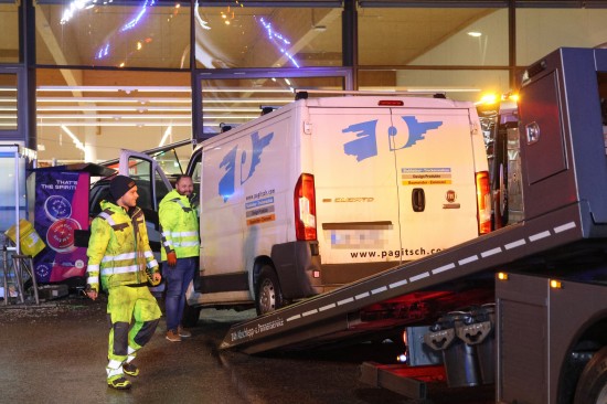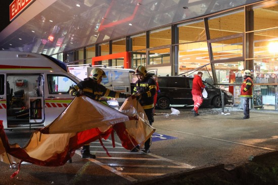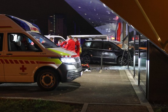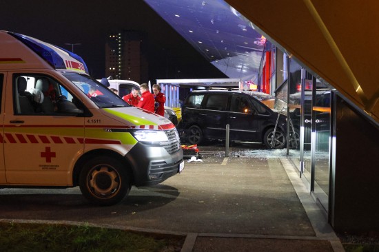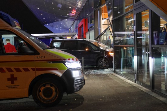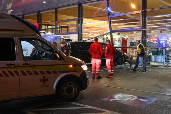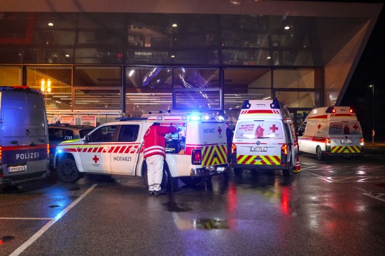 Der Unfall passierte Mittwochfrüh auf dem Parkplatz eines Lebensmittelmarktes im Welser Stadtteil Vogelweide. Der Lenker eines Kleintransporter erlitt hinter dem Steuer des Fahrzeuges offenbar einen internistischen Notfall. Das Auto kam von der Straße ab, fuhr über eine Grüninsel, querte eine Parkplatzeinfahrt und krachte gegen einen vor dem Geschäft parkenden PKW. Der PKW wurde durch die Glasfassade geschoben, die Lenkerin des PKW - sie stand gerade bei einem Zigarettenautomat - wurde vom Auto erfasst und schwer verletzt. Der Lenker des Transporters musste vor Ort reanimiert werden, er wurde unter Reanimationsbedingungen ins Klinikum Wels eingeliefert. Die Frau wurde ebenso ins Klinikum Wels gebracht. Eine Mitarbeiterin des betroffenen Geschäfts musste vom Team der Krisenintervention betreut werden. Vor Ort war ein Großaufgebot an Rettungs- und Polizeikräften, ebenso vor Ort waren der Notarzt und die Feuerwehr. Die Feuerwehr sicherte die Unfallstelle ab und setzte nach dem Abtransport der Unfallfahrzeuge durch das verständigte Abschleppunternehmen erste Sicherungsmaßnahmen.