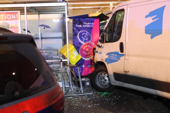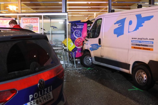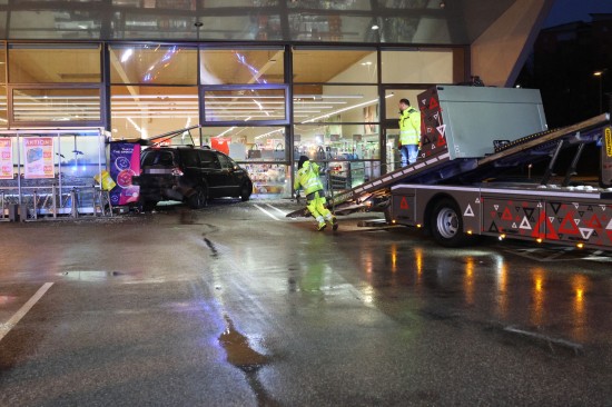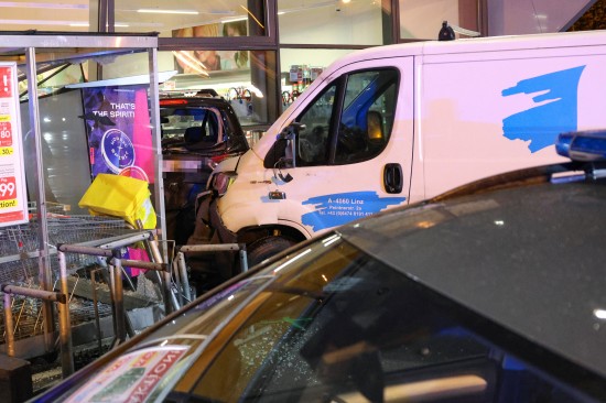 "Eine Verkehrsstreife wurde am 03. Dezember 2025 gegen 06:00 Uhr in die Schmierndorferstraße beordert, da sich dort, im Eingangsbereich eines Geschäftes, ein Unfall mit zwei Fahrzeugen ereignet hatte. Beim Eintreffen der Beamten konnten zwei stark beschädigte Fahrzeuge festgestellt werden, wobei eines davon mit der Motorhaube in der Glasfassade des Geschäftes steckte. Zwei Personen wurden bereits vom Notarzt und den Sanitätern erstversorgt. Vor Ort stellte sich heraus, dass ein 46-jähriger kroatischer Staatsangehöriger aus Wels mit seinem Kleintransporter von der Fahrbahn abkam, ein Verkehrszeichen streifte und über den Grünstreifen auf den Parkplatz fuhr. Zum gleichen Zeitpunkt wollte eine 42-jährige kroatische Staatsangehörige aus Wels beim dortigen Zigarettenautomat Zigaretten kaufen, wobei sie ihr Auto rechts neben dem Automaten parkte. Der 46-Jährige fuhr gegen das Heck des geparkten PKW der 42-Jährigen, wodurch das Auto in die Glasfassade des Geschäftes geschoben wurde. Die Frau wurde dabei von ihrem eigenen PKW erfasst. Beide Unfallbeteiligten wurden mit Verletzungen unbestimmten Grades in das Klinikum Wels eingeliefert."
