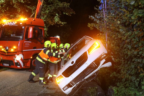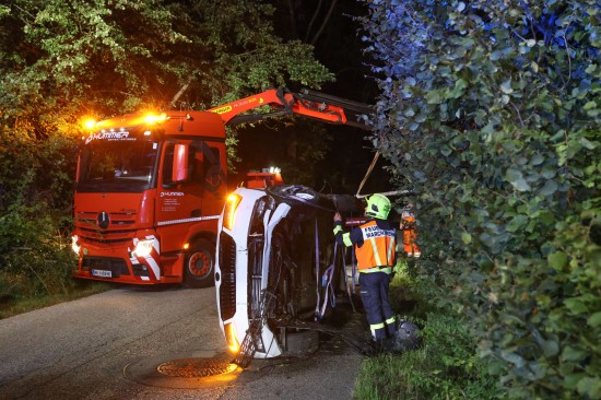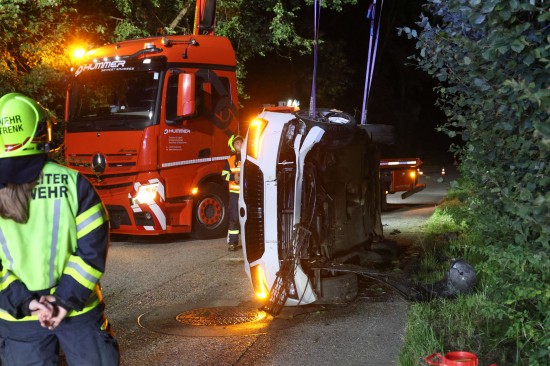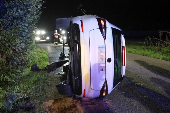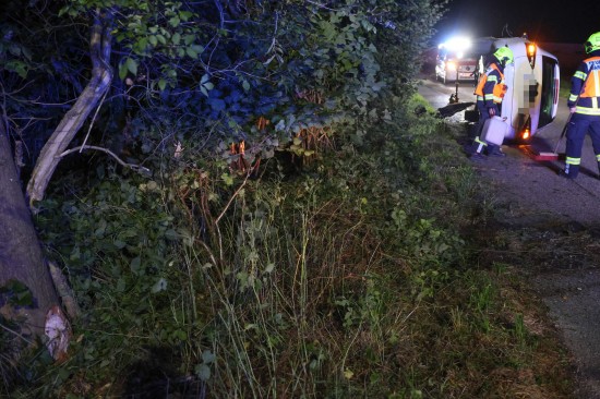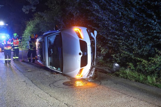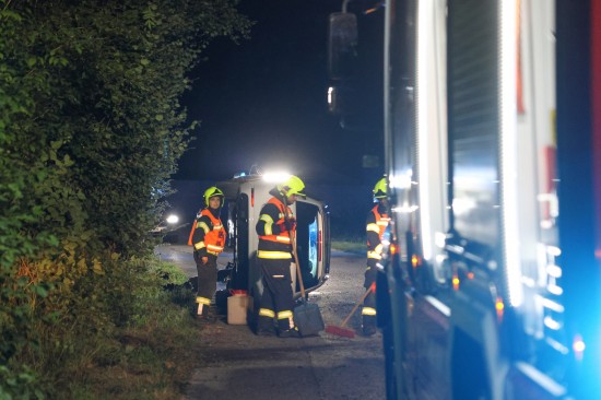 Der Lenker eines Fahrzeuges war ersten Angaben nach auf der Aufeldstraße unterwegs, als er im Bereich eines kleinen Waldstückes einem Reh ausweichen wollte. Der PKW kam von der Fahrbahn ab, touchierte einen Baum, Wurzelstöcke und Sträucher, das Fahrzeug kam dann in Seitenlage auf der Fahrbahn zum Stillstand. Der Lenker konnte sich selbst aus dem Auto befreien. Die Feuerwehr wurde zum Freimachen von Verkehrswegen alarmiert. Die Unfallstelle wurde abgesichert und der verständigte Abschleppdienst bei der Bergung unterstützt. Ausgelaufene Betriebsmittel mussten gebunden werden.