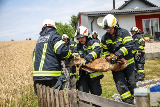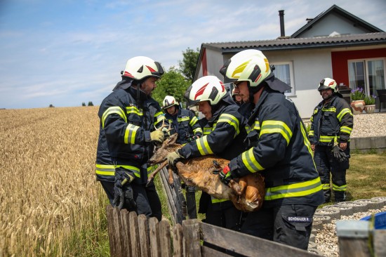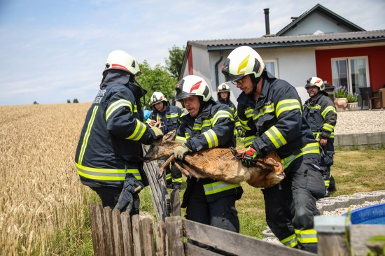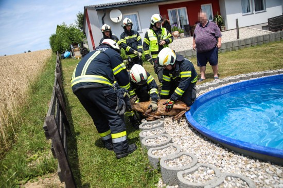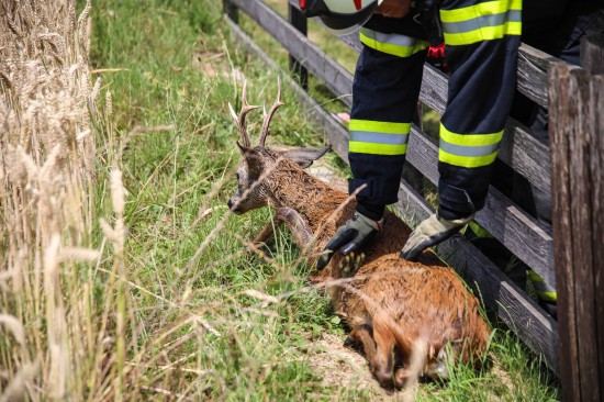 Holzhausen. In Holzhausen (Bezirk Wels-Land) hat die Feuerwehr am Sonntagnachmittag ein Reh aus einem Swimmingpool gerettet.