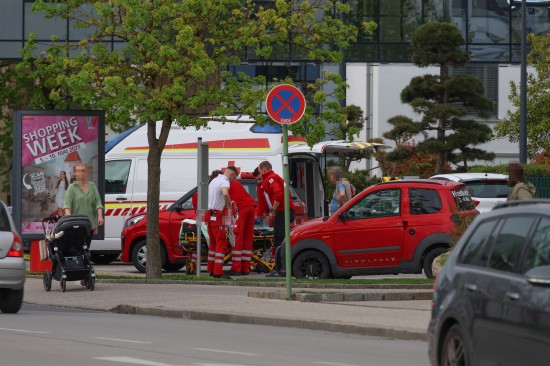 Rettungseinsatz beim Klinikum: Patient in Wels-Neustadt von Rettungskräften aus Mopedauto gerettet