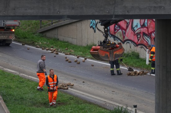 Rübenernte auf Autobahn: LKW verlor Teil seiner Ladung auf Auffahrt zur Innkreisautobahn bei Wels