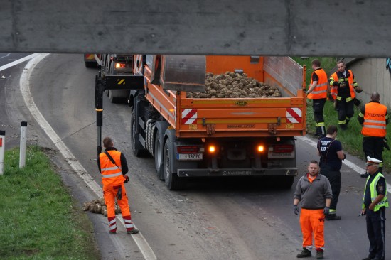 Ein LKW verlor im Bereich der Auffahrt zur A8 Innkreisautobahn bei Wels-West einen Teil seiner Rübenladung. Die Zuckerrüben verteilten sich im Bereich der Autobahnauffahrt. Einsatzkräfte des ASFINAG-Steckendienstes und in weiterer Folge aufgrund der größeren Menge auch der Feuerwehr wurden zu den Aufräumarbeiten alarmiert.
