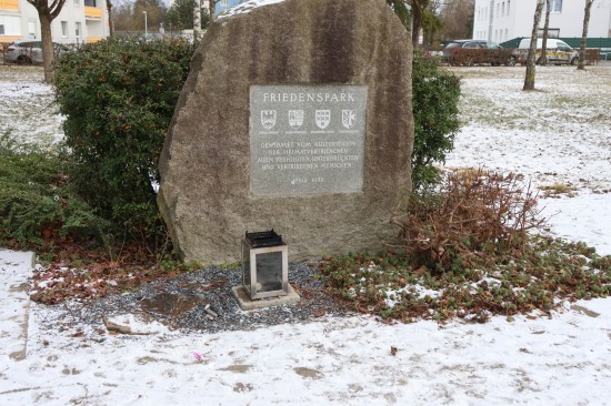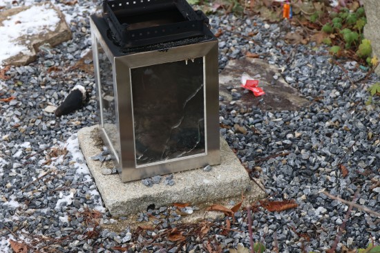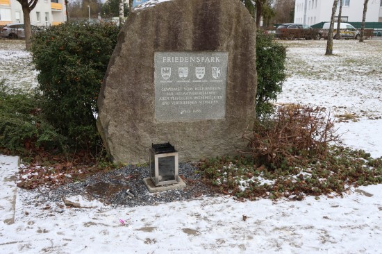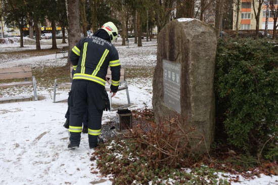 Schaden durch Pyrotechnik: Laterne an Gedenkstein im Friedenspark in Wels-Vogelweide beschädigt