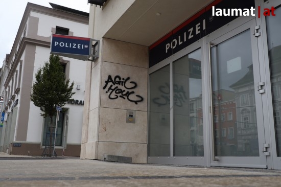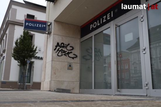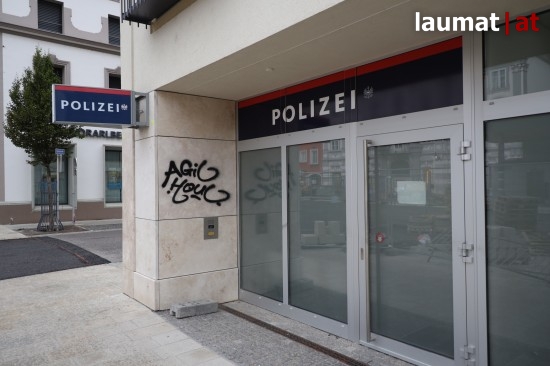 Wels. Teure Schäden haben unbekannte Täter am vergangenen Wochenende in Wels angerichtet. Der Eingangsbereich einer Polizeiinspektion, mehrere Gebäude, Verkehrszeichen und Lichtmasten wurden besprüht. Die Polizei konnte die Vorfälle auf laumat|at-Anfrage vorerst nicht bestätigen.