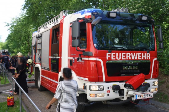 Die Einsatzkräfte zweier Feuerwehren wurden am Nachmittag des Pfingstmontags zu einem befürchteten Wohnungsbrand in einer Wohnsiedlung im Welser Stadtteil Vogelweide alarmiert. Polizei und die ersten eintreffenden Kräfte der Feuerwehr mussten zuerst wieder zahlreiche im Weg stehende Schaulustige - darunter beispielsweise viele Kinder und Jugendliche oder jausnende Jugendliche, die im Hauseingang des Brandobjekts herumstehen - wegschicken, um mit den Einsatzfahrzeugen direkt zum betroffenen Hauseingang vorfahren zu können. Vor Ort wurde Rauchentwicklung aus einer Wohnung im Erdgeschoß festgestellt. Die Einsatzkräfte verschafften sich Zutritt zur Wohnung und konnten angebranntes Kochgut am E-Herd als Ursache feststellen. In der Wohnung hielt sich niemand auf. Der Kleinbrand konnte rasch gelöscht werden, Lüftungsmaßnahmen wurden durchgeführt. Verletzt wurde niemand.