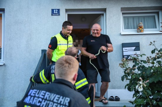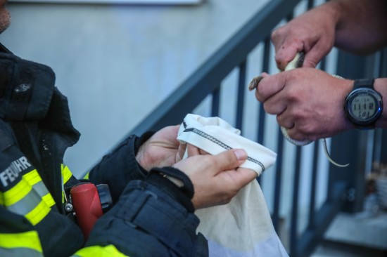 Schlange aus Spielzeugbagger gerettet - Feuerwehr bei Reptilieneinsatz in Marchtrenk im Einsatz