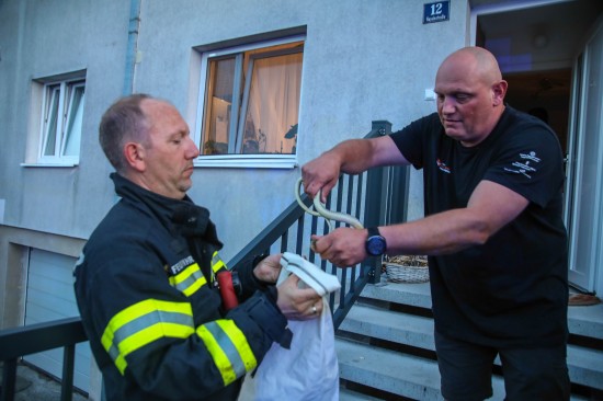 In Marchtrenk (Bezirk Wels-Land) wurde die Feuerwehr am späteren Freitagabend mit dem Einsatzstichwort "Rettung Kleintier" zu einem Reptilieneinsatz alarmiert.