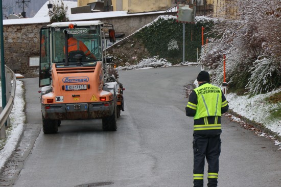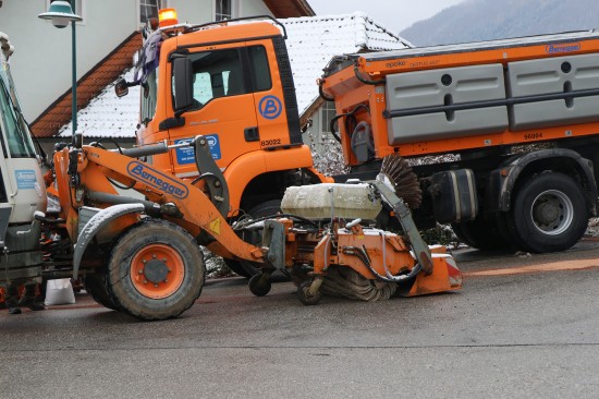 Ein technischer Defekt an einem Winterdienstfahrzeug hat am Freitagvormittag in Grünburg für rutschige Straßen gesorgt. Fünf Feuerwehren waren im Einsatz.