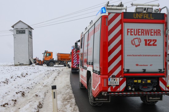 Ein schwerer Verkehrsunfall zwischen einem Schneepflug und einem PKW hat sich Freitagmittag in Kremsmünster (Bezirk Kirchdorf an der Krems) ereignet.