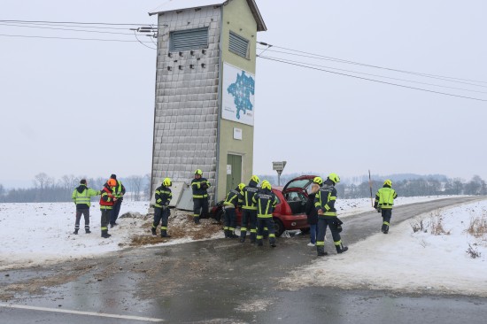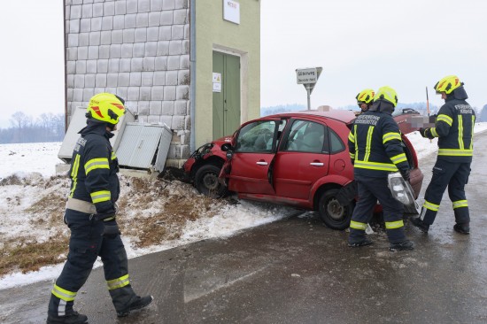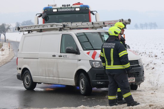 Im Kreuzungsbereich der L561 Bad Haller Straße, Oberrohr, dem Güterweg Oberrohr-Haid und Oberrohr, im Gemeindegebiet von Kremsmünster, kollidierten aus noch unbekannter Ursache ein Räumfahrzeug und ein PKW. Nach dem Crash krachten beide Fahrzeuge gegen eine Trafostation. Drei Feuerwehren wurden zur Personenrettung nach dem Unfall alarmiert. Glücklicherweise war entgegen erster Befürchtungen niemand in den Unfallfahrzeugen eingeklemmt oder eingeschlossen. Der PKW-Lenker wurde bei dem Unfall verletzt. Er wurde nach der Erstversorgung durch den Rettungsdienst ins Pyhrn-Eisenwurzen Klinikum Steyr eingeliefert. Die Fahrzeuge kamen an zwei Verteilerkästen zum Stillstand, welche bei dem Anprall beschädigt wurden. Nach Freigabe eines Technikers des Energieversorgungsunternehmens konnten die Einsatzkräfte der Feuerwehr mit den Aufräumarbeiten beginnen. Der Schneepflug konnte die Fahrt fortsetzen. Der PKW wurde von einem verständigten Abschleppdienst abgeholt.