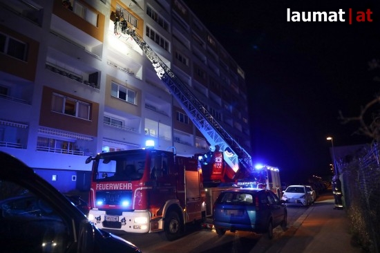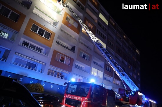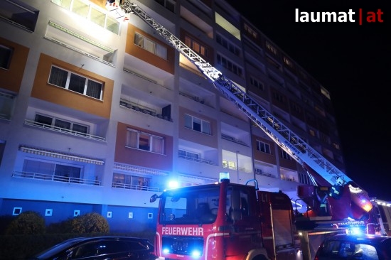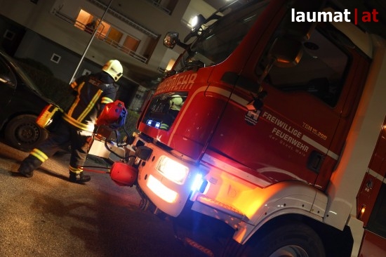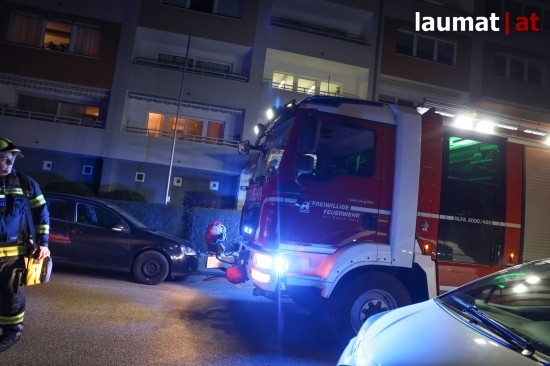 Schwelbrand "hinausgelüftet": Nächtlicher Einsatz in einem Mehrparteienwohnhaus in Wels-Neustadt