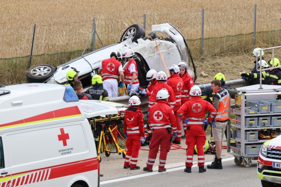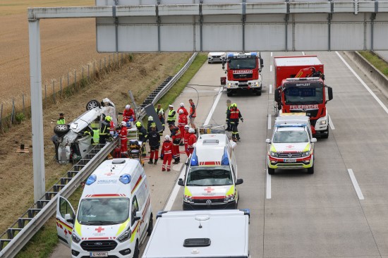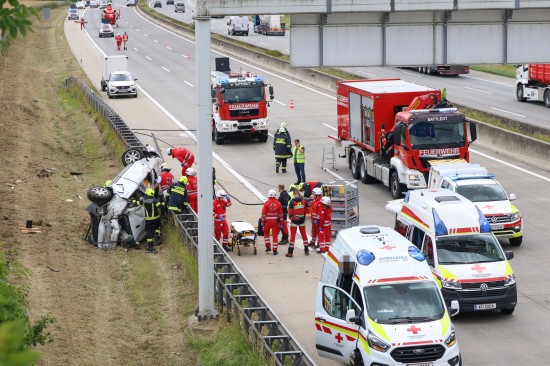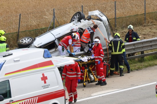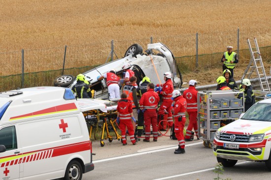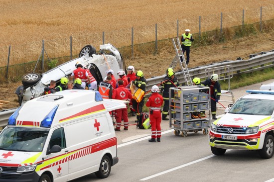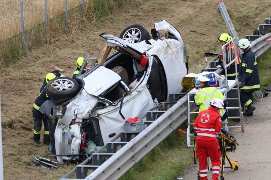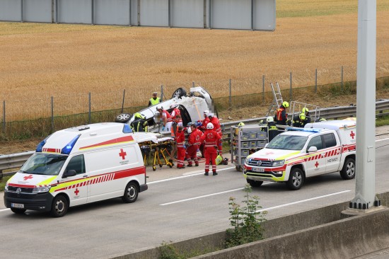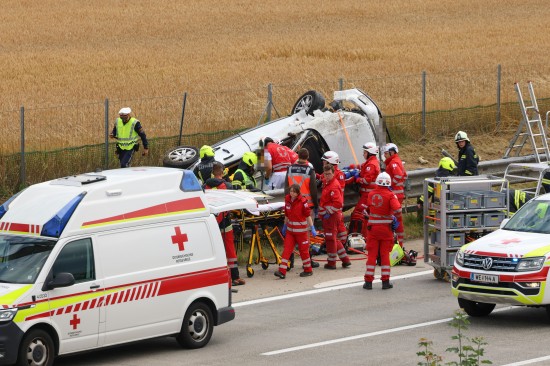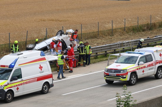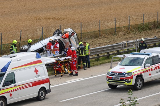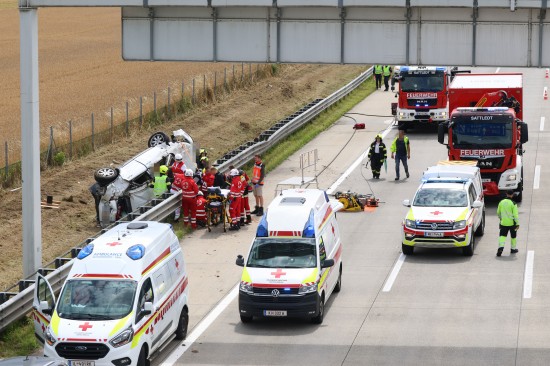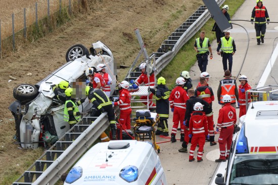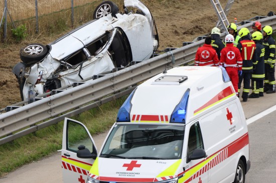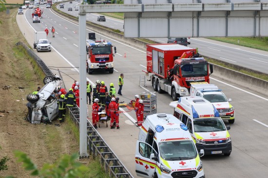"Am 09. Juli 2025 kurz nach 14:00 Uhr lenkte eine 60-Jährige aus dem Bezirk Linz-Land ihren PKW entlang der A1 Westautobahn Richtung Wien. Bei Straßenkilometer 184 überschlug sich ihr Fahrzeug mehrere Male und kam schlussendlich seitlich stehend am Grünstreifen zum Stillstand. Die eingeklemmte Lenkerin wurde durch Kräfte der Feuerwehr mit Bergegeräten aus dem Fahrzeug befreit und an die Rettungskräfte übergeben. Die medizinische Versorgung führte neben dem Roten Kreuz und Notarzt, auch das Team des Notarzthubschraubers Martin 3 durch. Mit Verletzungen unbestimmten Grades wurde sie ins Krankenhaus geflogen. Ein durchgeführter Alkomattest verlief negativ."