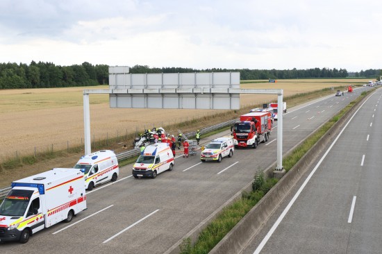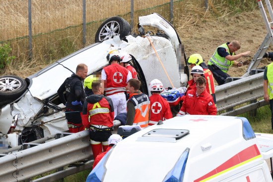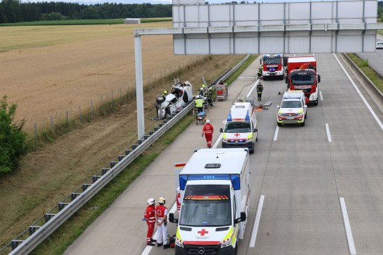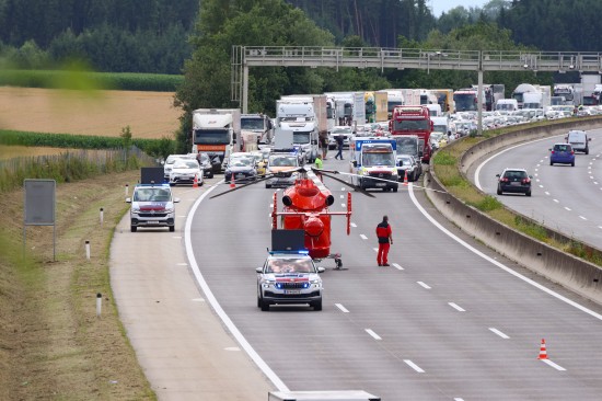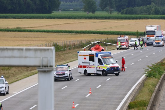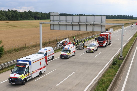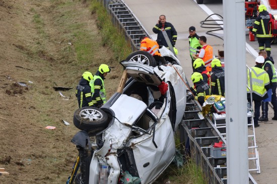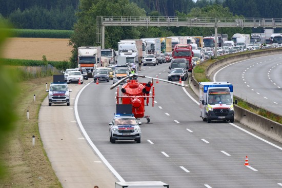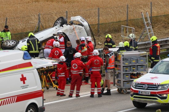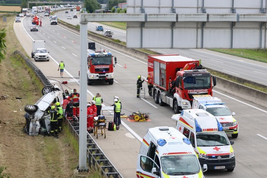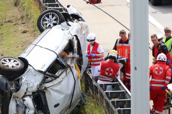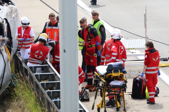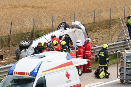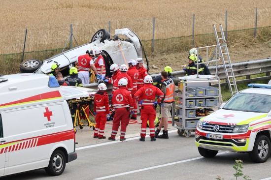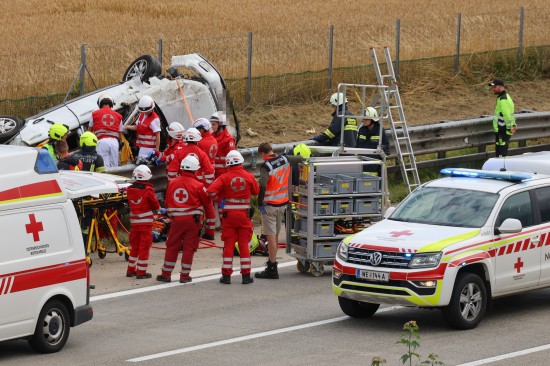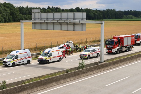 "Am 09. Juli 2025 kurz nach 14:00 Uhr lenkte eine 60-Jährige aus dem Bezirk Linz-Land ihren PKW entlang der A1 Westautobahn Richtung Wien. Bei Straßenkilometer 184 überschlug sich ihr Fahrzeug mehrere Male und kam schlussendlich seitlich stehend am Grünstreifen zum Stillstand. Die eingeklemmte Lenkerin wurde durch Kräfte der Feuerwehr mit Bergegeräten aus dem Fahrzeug befreit und an die Rettungskräfte übergeben. Die medizinische Versorgung führte neben dem Roten Kreuz und Notarzt, auch das Team des Notarzthubschraubers Martin 3 durch. Mit Verletzungen unbestimmten Grades wurde sie ins Krankenhaus geflogen. Ein durchgeführter Alkomattest verlief negativ."