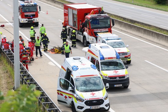 Schwer eingeklemmt: Schwierige Rettungsaktion bei Unfall auf Westautobahn in Eggendorf im Traunkreis