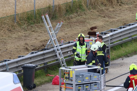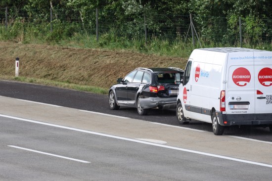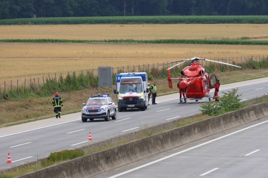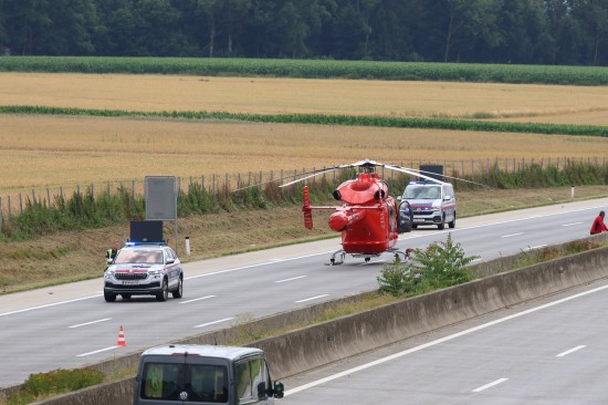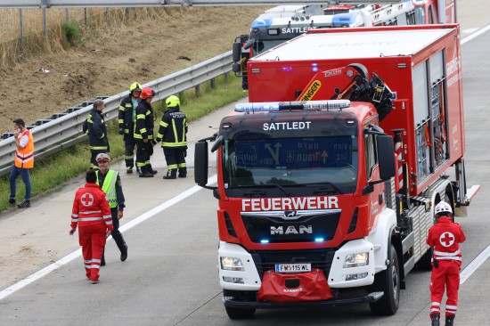 Allhaming/Eggendorf im Traunkreis. Ein schwerer Verkehrsunfall hat sich Mittwochnachmittag auf der A1 Westautobahn bei Eggendorf im Traunkreis (Bezirk Linz-Land) ereignet. Eine Person war schwer im Unfallfahrzeug eingeklemmt.