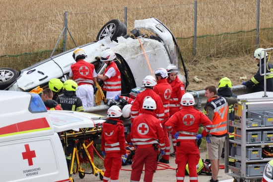 Der Unfall passierte Mittwochnachmittag auf der A1 Westautobahn in Fahrtrichtung Wien bei Eggendorf im Traunkreis. Ein Auto hat sich dabei offensichtlich gleich mehrmals überschlagen und kam dann in seitlicher Lage hinter einer Leitschiene zum Stillstand.Unmittelbar nach dem Unfall kamen an der Unfallstelle ein Mitarbeiter der Berufsrettung sowie ein Rettungsfahrzeug aus Tirol vorbei, welche sofort die Ersthelfer unterstützten. Eine Feuerwehr, sowie mehrere Rettungsfahrzeuge, Notarzt und Notarzthubschrauber wurden an die Einsatzstelle geschickt. Eine Autolenkerin musste von den Einsatzkräften in einer aufwendigen Rettungsaktion aus dem Unfallwrack befreit werden. Mittels hydraulischem Rettungsgerät wurde ein Ausstieg geschaffen, nach rund einer Stunde konnte die Verletzte befreit werden. Nach der weiteren ärztlichen Versorgung am Unfallort wurde die Person mit dem Notarzthubschrauber Martin 3 ins Klinikum Wels geflogen. Wenige Meter nach der Unfallstelle - aber bereits im Gemeindegebiet von Allhaming - kam mindestens ein weiteres Unfallfahrzeug zum Stillstand, ob das Fahrzeug unmittelber in den Unfall verwickelt war oder ob es ein Folgeunfall war, war vorerst nicht bekannt.