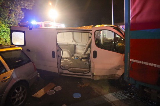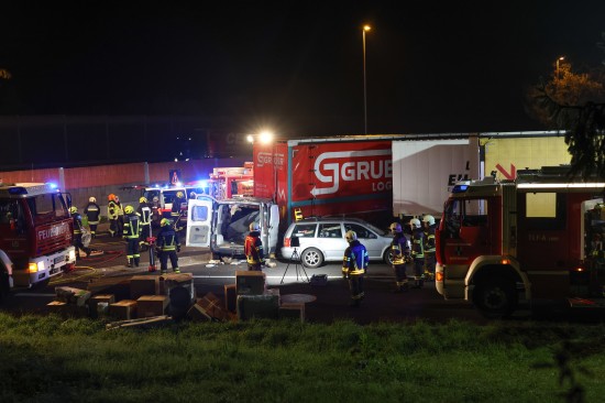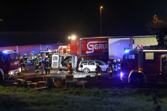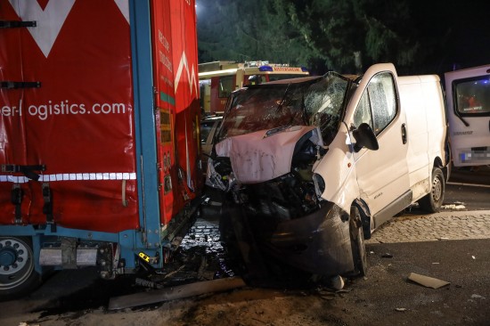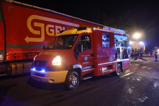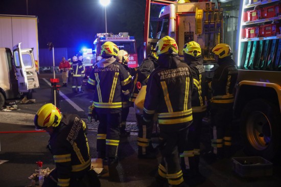 Der Unfall ereignete sich in der Nacht auf Dienstag - kurz vor Mitternacht - auf der A8 Innkreisautobahn, in Fahrtrichtung Knoten Wels. Ein Kleintransporter krachte am Autobahnrastplatz Schnittering mit hoher Geschwindigkeit ins Heck eines dort abgestellten LKW-Sattelzuges. Die Fahrerkabine des Kleintransporters wurde beim Anprall schwer deformiert. Die Einsatzkräfte zweier Feuerwehren, Rettung, Notarzt und Autobahnpolizei wurden zur Personenrettung nach dem schweren Verkehrsunfall alarmiert. Der schwer eingeklemmte Lenker musste von den Einsatzkräften der Feuerwehr aus dem Wrack geschnitten werden. Die Ladung - in erster Linie Elektrogeräte - wurden zwischenzeitlich aus dem Laderaum entfernt, durch die Rückwand hindurch konnte der Schwerverletzte dann aus dem Unfallwrack gerettet und der Rettung für den Transport ins Klinikum Wels übergeben werden. Die Einsatzkräfte der Feuerwehr führten in der Folge Aufräumarbeiten gemeinsam mit dem Streckendienst der ASFINAG durch. Ausgelaufene Betriebsmittel mussten gebunden werden. Der Lenker des LKW-Sattelzuges überstand den Unfall unverletzt.