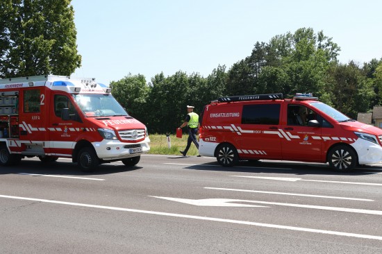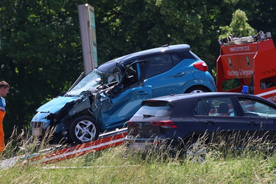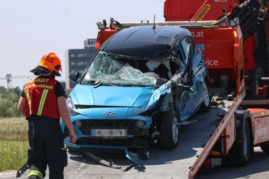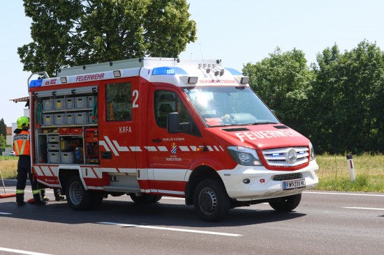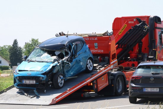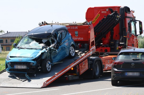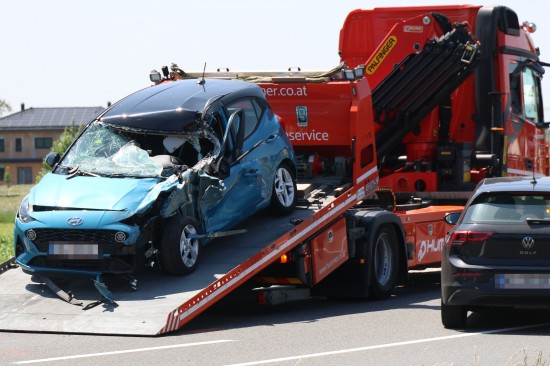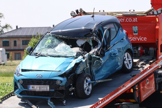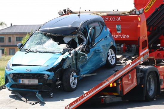 Schwerer Auffahrunfall zwischen PKW und Pritschenwagen auf Wiener Straße bei Marchtrenk
