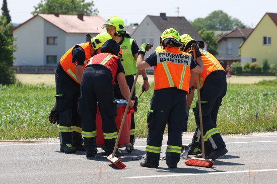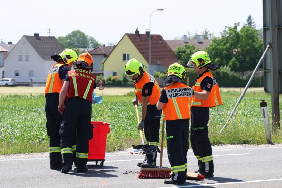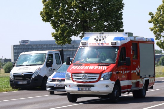 Der Unfall passierte am frühen Nachmittag auf der B1 Wiener Straße, Welser Straße, im Gemeindegebiet von Marchtrenk. In Fahrtrichtung Linz krachte dort offensichtlich ein PKW in das rechte hintere Eck eines Pritschenwagens. Der PKW wurde beim Aufprall schwer beschädigt. Die Feuerwehr wurde zu den Aufräumarbeiten an die Unfallstelle geholt. Ein Abschleppdienst kümmerte sich um den Abtransport der Unfallfahrzeuge.