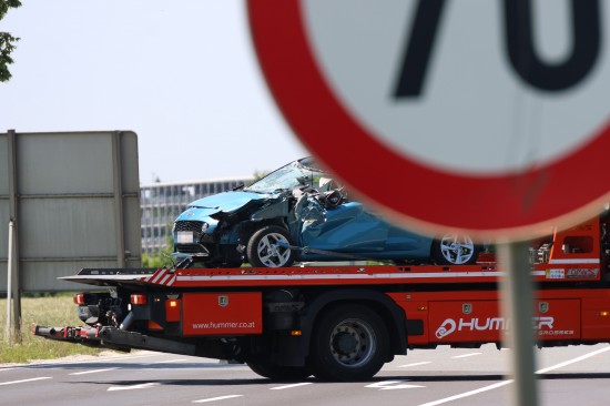 Ein schwerer Auffahrunfall zwischen einem Pritschenwagen und einem PKW hat sich Donnerstagnachmittag auf der B1 Wiener Straße in Marchtrenk (Bezirk Wels-Land) ereignet.