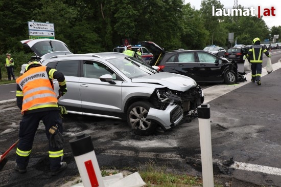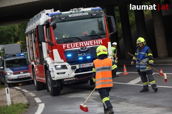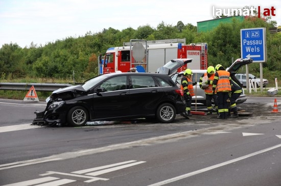 Wie zuletzt bereits mehrmals hat sich Dienstagnachmittag wieder ein Unfall im Kreuzungsbereich der A25 Welser Autobahn mit der L534 Marchtrenker Straße im Gemeindegebiet von Weißkirchen an der Traun ereignet. Zwei PKW kollidierten aus noch ungeklärten Gründen. Die beiden Fahrzeuglenker wurden vor Ort vom Rettungsdienst versorgt. Die Feuerwehr sicherte die Unfallstelle ab, größere Mengen ausgelaufener Betriebsmittel mussten gebunden werden.