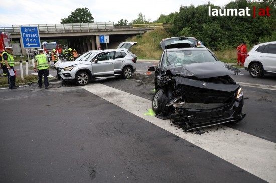 Schwerer Crash im Bereich der Autobahnanschlussstelle in Weißkirchen an der Traun