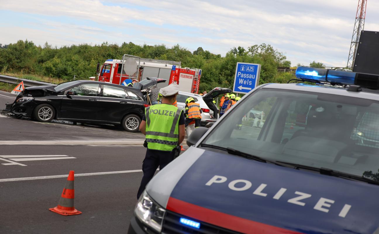 Ein schwerer Crash hat sich Dienstagnachmittag im Bereich der Autobahnanschlussstelle Weißkirchen an der Traun (Bezirk Wels-Land) ereignet.