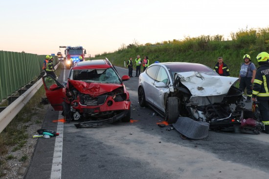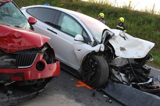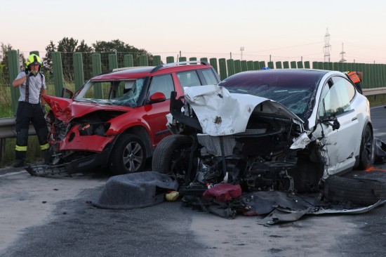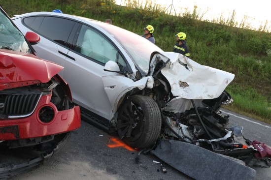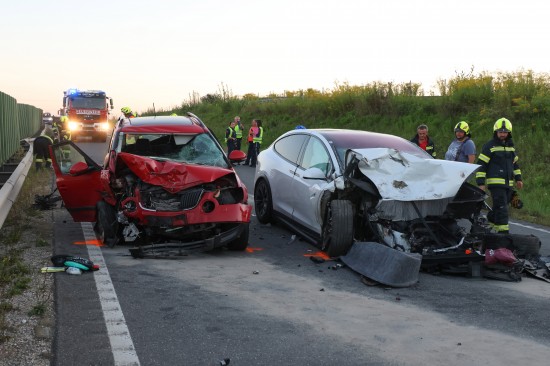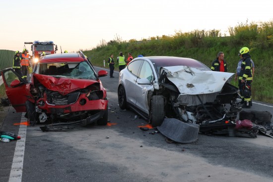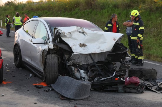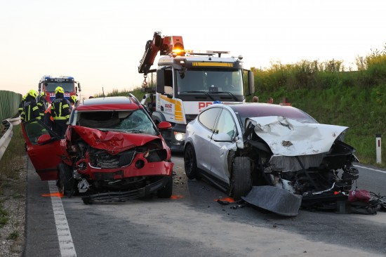 Schwerer Crash mit drei beteiligten PKW auf Steyrer Straße bei Dietach