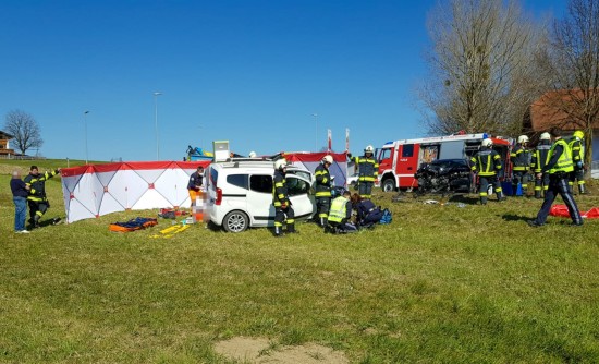 Tarsdorf. Ein schwerer Frontalcrash hat sich Donnerstagnachmittag bei Tarsdorf (Bezirk Braunau am Inn) ereignet. Zwei Fahrzeuge dürften ersten Angaben nach frontal zusammengeprallt sein.