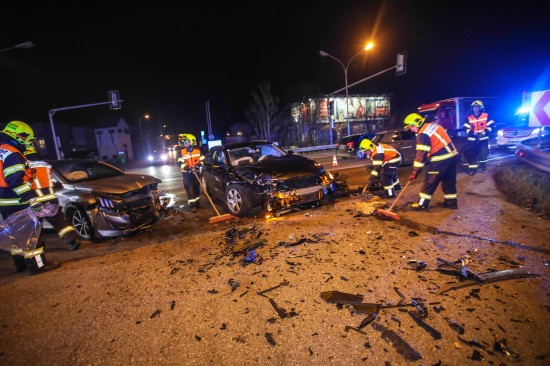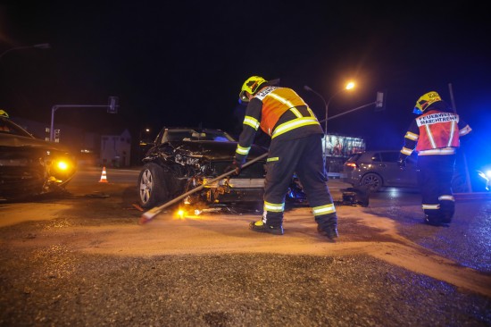 Im Kreuzungsbereich der B1 Wiener Straße, Welser Straße mit der Weißkirchner Straße in Marchtrenk kollidierten Montagabend zwei PKW. Die Feuerwehr wurde zum Freimachen eines Verkehrsweges alarmiert. Vor Ort stellte sich dann heraus, dass es sich um einen heftigen Kreuzungscrash handelte. Der Rettungsdienst war mit mehreren Fahrzeugen vor Ort. Eine verletzte Person wurde nach der Erstversorgung ins Krankenhaus gebracht. Die Einsatzkräfte der Feuerwehr führten die Aufräumarbeiten an der Unfallstelle durch.