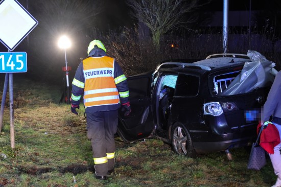 Die Einsatzkräfte zweier Feuerwehren wurden am Mittwoch in den frühen Morgenstunden zu einem schweren Verkehrsunfall auf die B145 Salzkammergutstraße, Marktstraße an der Kreuzung mit der L1265 Schörflinger Straße - der sogenannten "Himmelreich Kreuzung" - im Gemeindegebiet von Regau alarmiert. Im Kreuzungsbereich kam es aus noch unbekannten Gründen zu einer Kollision zwischen einem Auto und einem LKW. Das Auto wurde seitlich auf die Böschung geschleudert. Eine Person musste ersten Angaben nach aus dem Unfallwrack befreit werden. Der LKW überfuhr nach dem Crash einen Grünstreifen und krachte in das Eck des angrenzenden Wohnhauses sowie in ein Carport neben einem Garagengebäude. Zwischen den beiden Gebäuden kam das Schwerfahrzeug dann zum Stillstand. Nach Abschluss der Rettungsaktion führte die Feuerwehr gemeinsam mit dem verständigten Abschleppdienst die Bergung des verunfallten PKW durch.