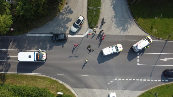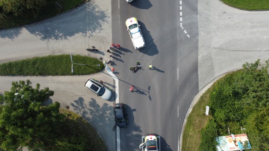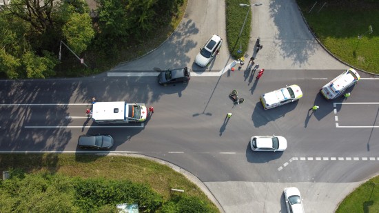 Der Unfall passierte im Kreuzungsbereich der L1249 Grünbachtalstraße mit der Kieswerk- sowie der Rotax- beziehungsweise Welser Straße im Gemeindegebiet von Gunskirchen. Aus noch unbekannten Gründen passierte dort eine Kollision zwischen einem Moped und einem PKW. Der Mopedlenker wurde mittelschwer, die Autolenkerin leicht verletzt. Ein weiterer PKW war ebenso in den Crash verwickelt. Neben einigen Ersthelfern wurden die Verletzten auch sofort von einer zufällig an der Unfallstelle vorbeikommenden Ärztin erstversorgt. In weiterer Folge übernahmen die Rettungskräfte - auch hier kam ein Rettungsfahrzeug zufällig an der Unfallstelle vorbei - und der Notarzt die Versorgung der Verletzten.