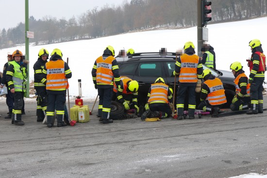 Ein schwerer Kreuzungscrash zwischen zwei Autos hat sich Freitagnachmittag auf der B138 Pyhrnpass Straße in Thalheim bei Wels (Bezirk Wels-Land) ereignet.