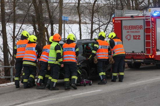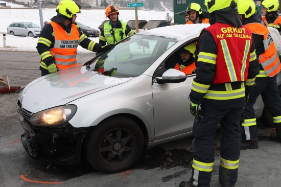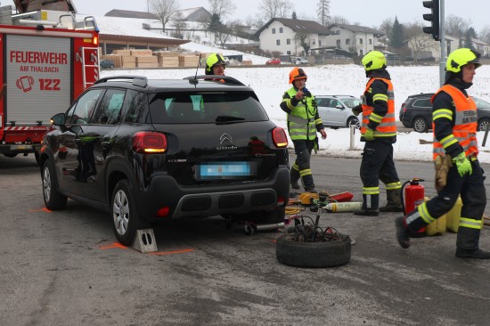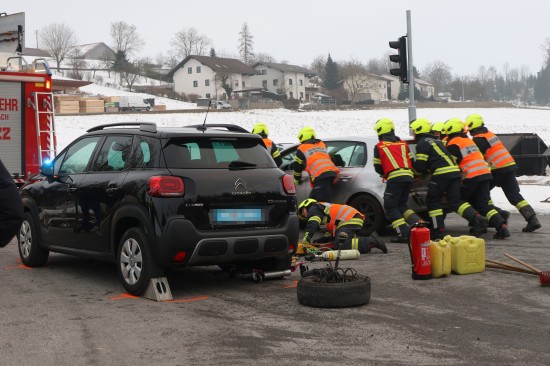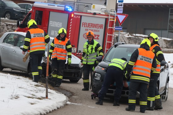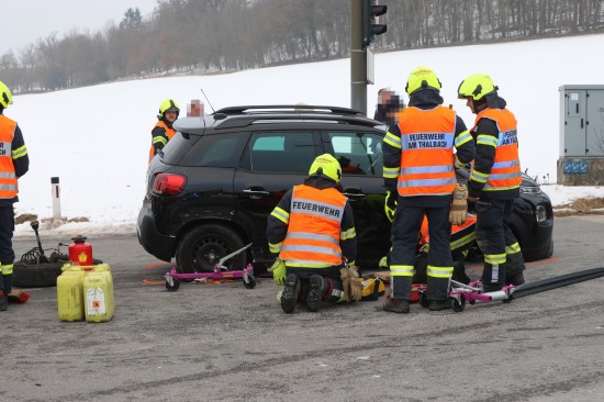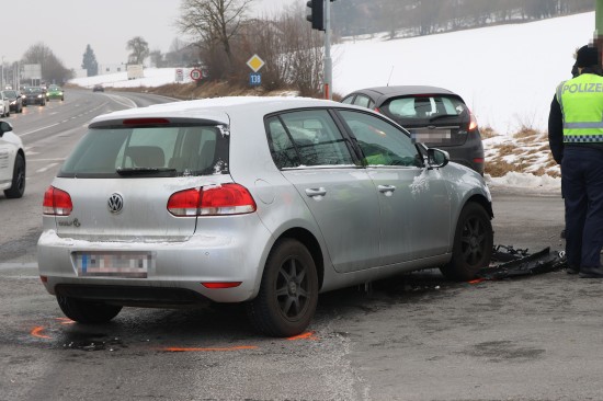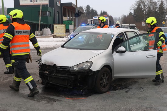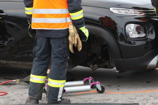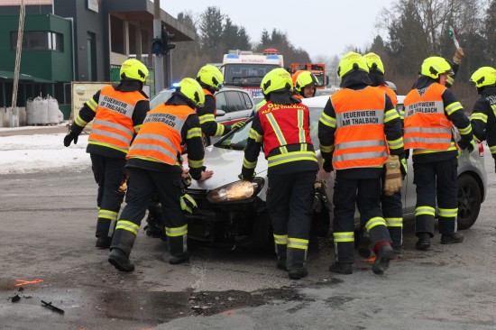 Schwerer Kreuzungscrash zwischen zwei Autos auf Pyhrnpass Straße in Thalheim bei Wels