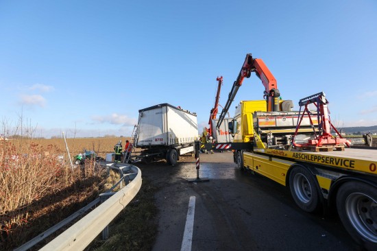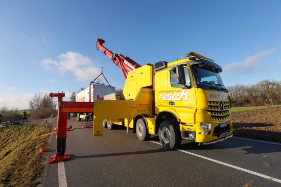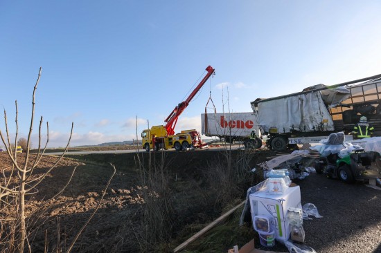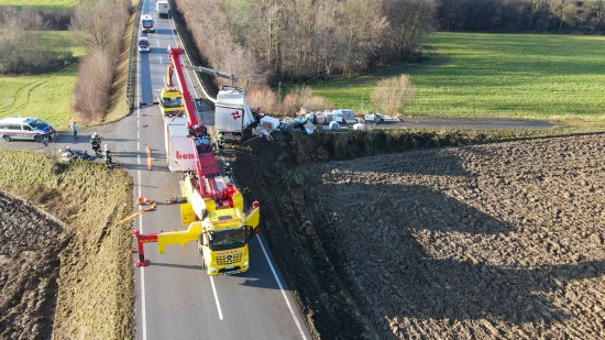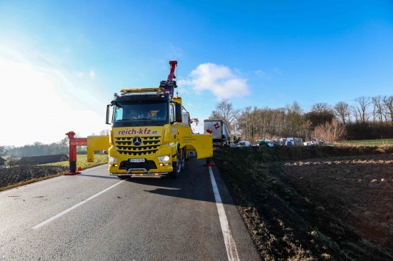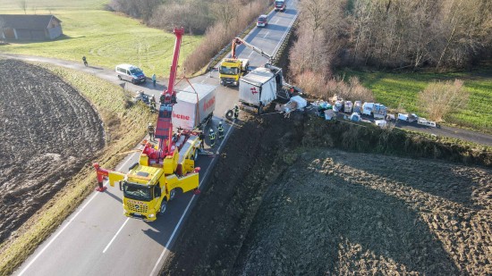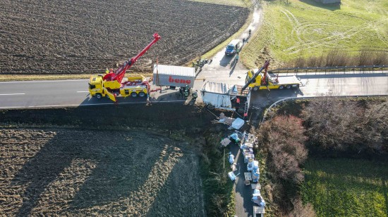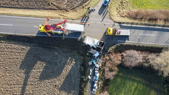Ein schwerer LKW-Unfall hat sich Montagfrüh auf der Altheimer Straße auf Höhe der Ortschaft Krautsdorf in St. Georgen bei Obernberg am Inn (Bezirk Ried im Innkreis) ereignet.