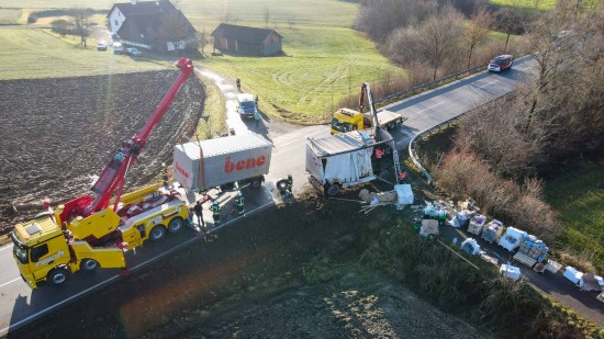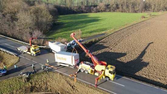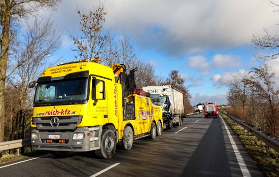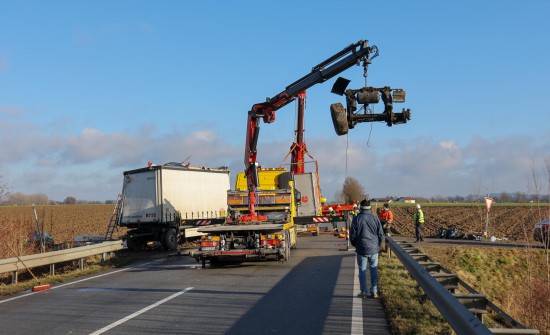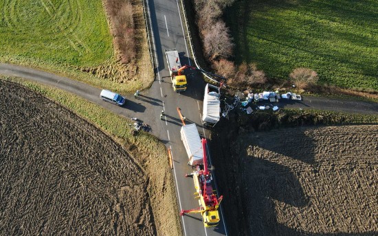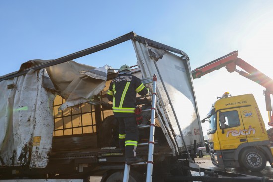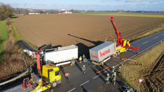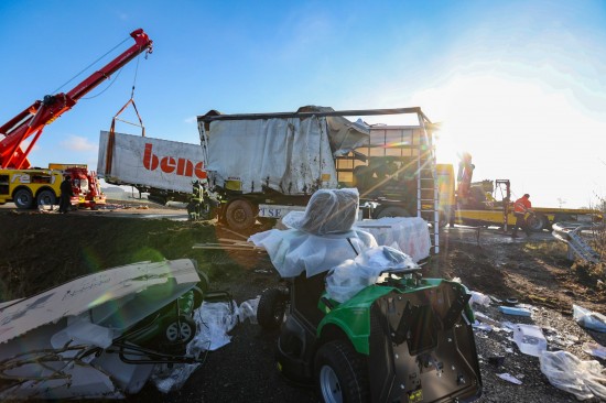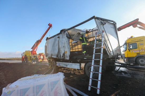 Ersten Angaben zufolge waren zwei LKW in den Unfall auf der Altheimer Straße im Gemeindegebiet von St. Georgen bei Obernberg am Inn verwickelt. Die Feuerwehr sowie ein Spezialbergeunternehmen führten die umfangreichen Bergearbeiten an der Unfallstelle durch.