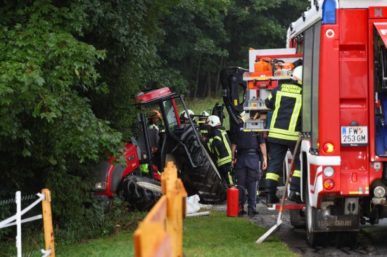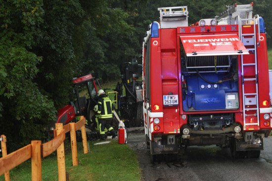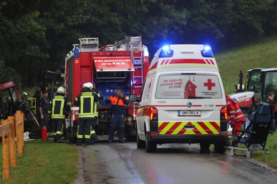 Die Einsatzkräfte wurden Freitagnachmittag zu einer Personenrettung in die Ortschaft Kogl im Gemeindegebiet von Kirchham alarmiert. Ein Traktor war offenbar mitsamt Holzrückewagen auf einer Wiese bergab unterwegs, das Gespann konnte dann aus noch unbekannten Gründen offensichtlich nicht mehr abgebremst werden und krachte dann dort gegen Bäume am Waldrand. Der Traktor wurde dabei schwer beschädigt. Die Einsatzkräfte der Feuerwehr wurden zur Personenrettung alarmiert. Der Traktorlenker wurde nach der Erstversorgung am Einsatzort durch Rettungsdienst und Notarzt ins Krankenhaus gebracht. Die Feuerwehr forderte einen Kran zur Bergung des verunfallten Gespanns an.