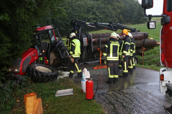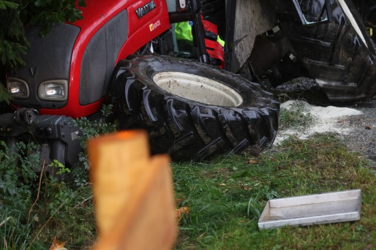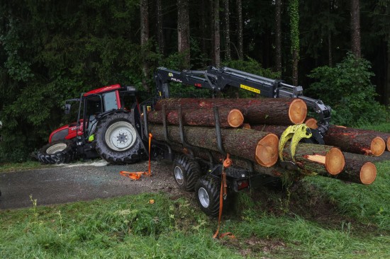"Zu einem schweren Traktorunfall kam es am 05. September 2025 gegen 16:30 Uhr in Kirchham. Ein 30-Jähriger wollte mit seinem Traktor samt Anhänger - dieser war mit Holzstämmen vollbeladen - einen steilen Hang nach unten fahren. Bei schlechter Witterung konnte er das Gespann nicht mehr abbremsen und rutschte den Hang hinunter. Er schlitterte über die dortige Straße und krachte anschließend gegen mehrere Bäume. Nach der Erstversorgung durch die Rettung wurde der Schwerverletzte ins Klinikum Wels eingeliefert."