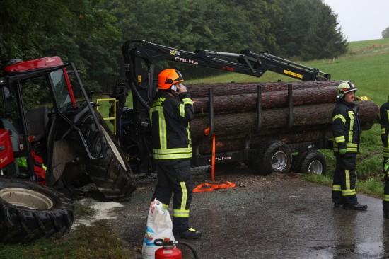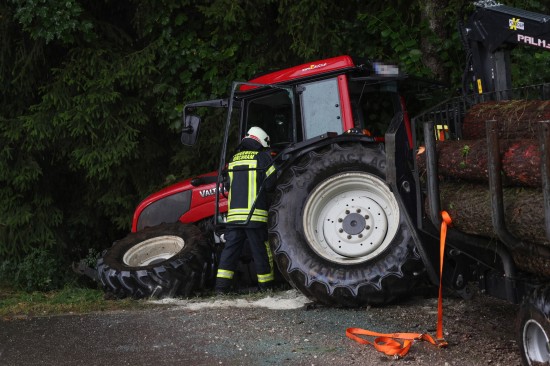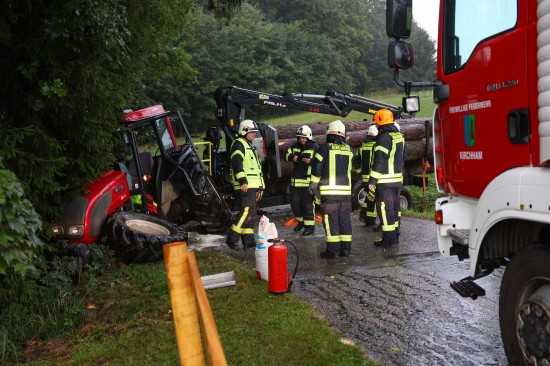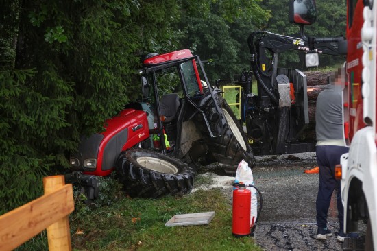 Ein schwerer Unfall mit einem Traktor samt Holzrückewagen hat sich am Freitagnachmittag in Kirchham (Bezirk Gmunden) ereignet. Der Traktorlenker wurde dabei schwer verletzt.